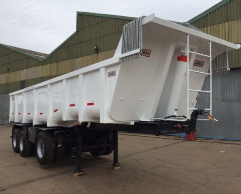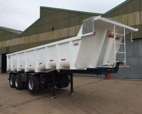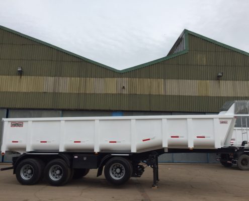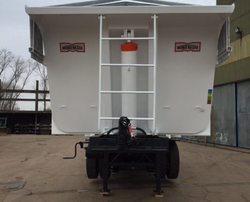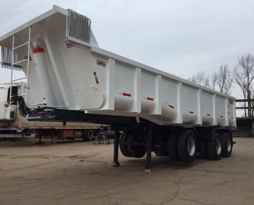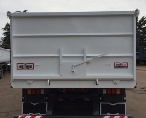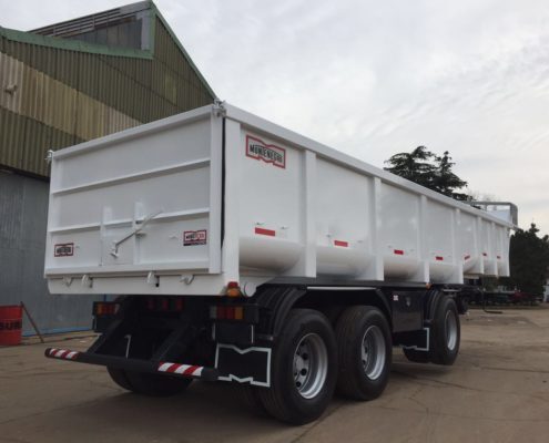 Batea Vuelco trasero deprimida, 27m3 - Longitud 9,30mtx x 2.60 mts - Altura de balde 1,32mts - 10 arcos de lona - Cilindro HYVA de 5 tramos con válvula de seguridad - Tara Aprox 9.100kg