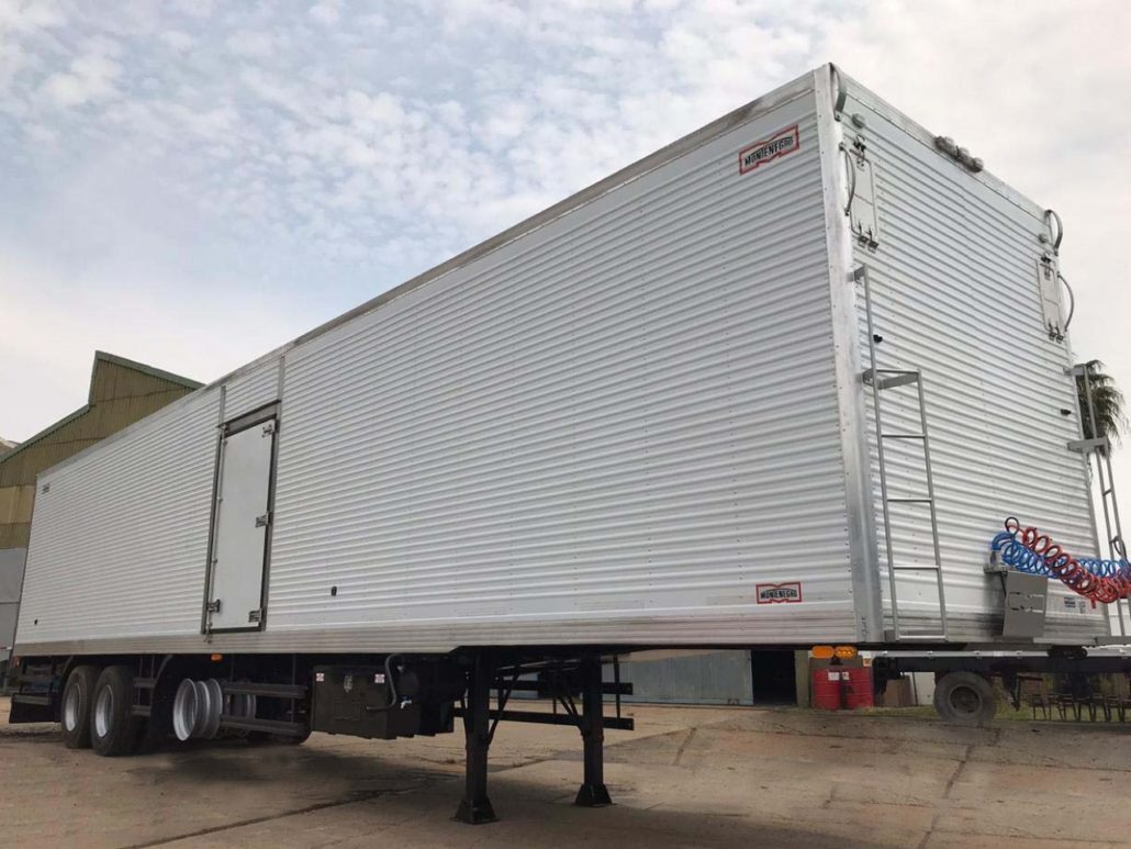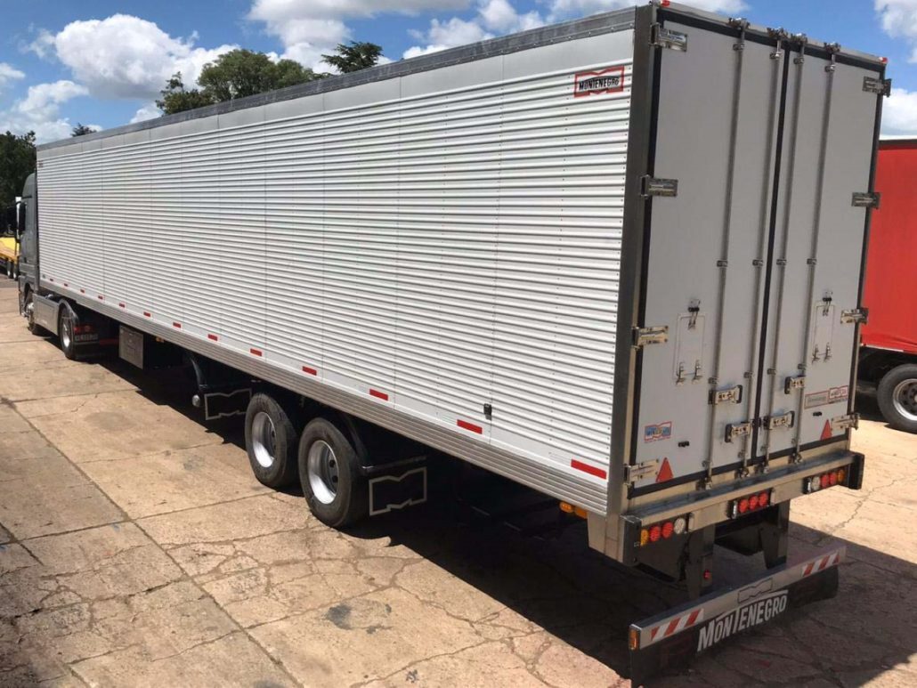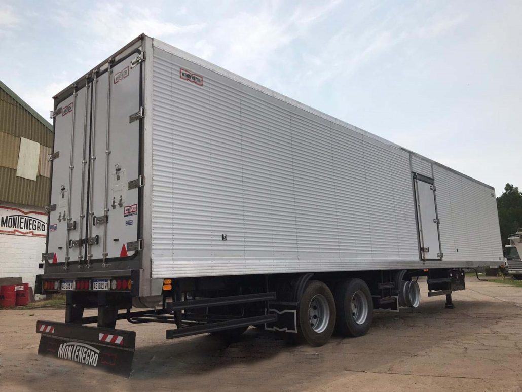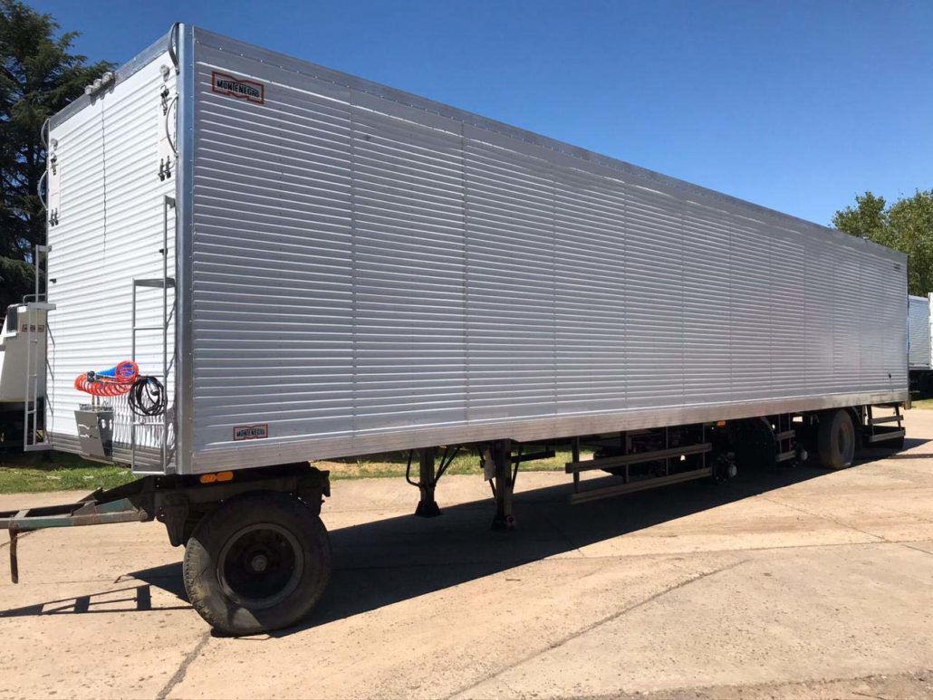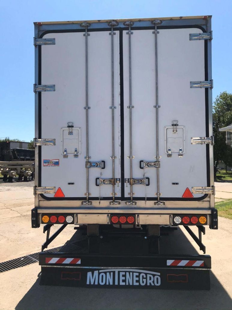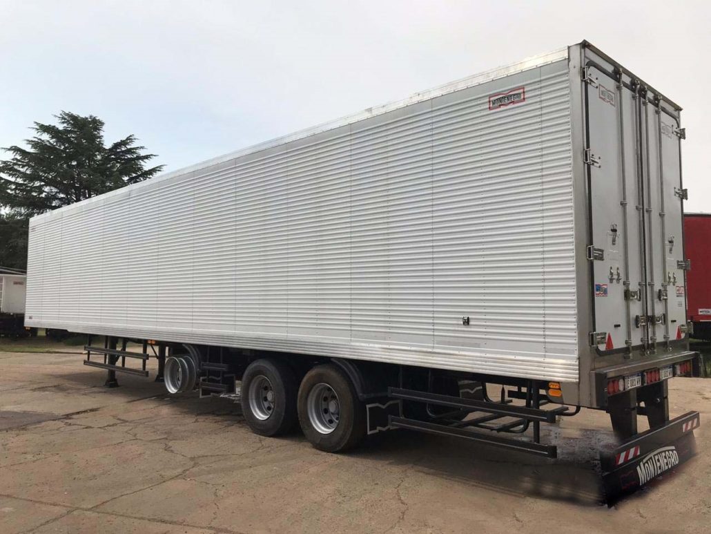 SEMIRREMOLQUE FURGON TERMICO 2+1 EJES EN TANDEM NUEVO (0km) MARCA MONTENEGRO INDUSTRIA ARGENTINA DIMENSIONES LARGO TOTAL: 13.700 / 14.700 mm. ANCHO: 2.600 mm. ALTURA INTERNA: 2.500 mm. ANCHO INTERNO: 2.450 mm.- LARGO INTERNO: 13.500 / 14.500 mm. ALTURA DE ENGANCHE: 1.350 mm. ALTURA TOTAL: 4100 mm.- (Con Neumáticos 295/80 R 22.5 Diámetro 1.050 mm.) CAPACIDAD: 45.000 Kg. (PBTC, con camión 4x2, según D. N. V.).